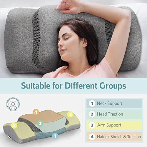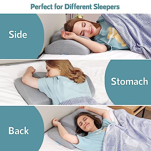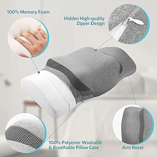 - ✅【Comfort and Support】Uniquely designed to fit the contours of your head, neck, and shoulders. With specific grooves, you can rest your arms comfortably underneath while you sleep. Even if you prefer to sleep on your stomach, you can wrap your arms around the perfectly positioned wings for optimal support. This contour pillow also doubles as a practical solution for working or using your mobile phone in bed.
