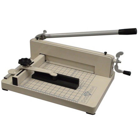 DocuGem R125 12.5″ Ream Paper Cutter, perfect for print shops, schools, and copy centers. This cutter, with a heavy metal base, can cut up to 360 sheets of paper at once. It features a rotary crank operated paper clamp for safety and clean cuts, a blade lock for security, and preprinted grids for precision. With its large cutting table and adjustable backstop, it’s an excellent tool for handling large volumes of paper efficiently and accurately. Used and in excellent condition.