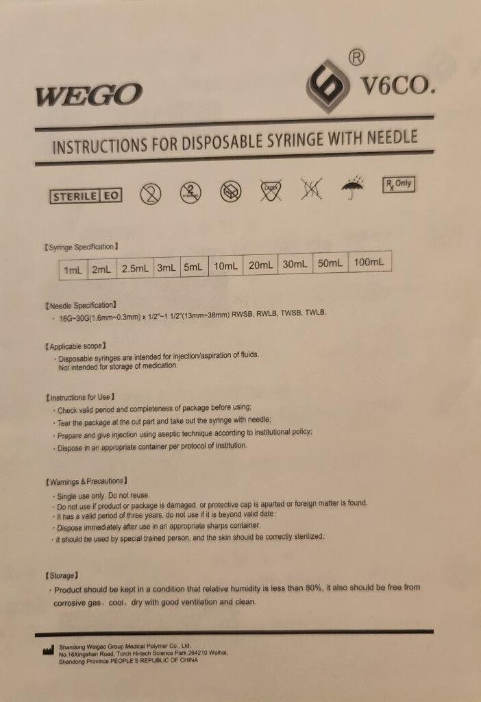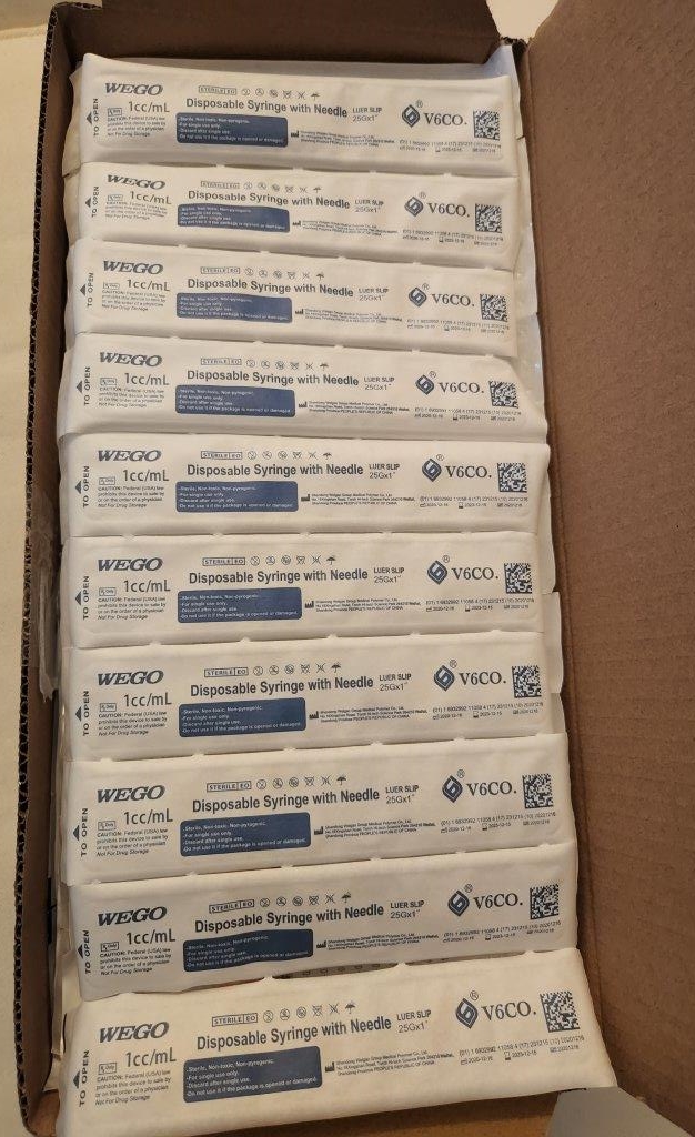 Available for bulk purchase is a wholesale lot of 750,000 WEGO 1ML LUER LOCK Syringes with 25 Gauge x 1″ Needles, distributed on 15 pallets. Each syringe is designed for various medical purposes including diabetic, tuberculin, post-operative conditions, vitamin deficiencies, and intramuscular medication. Packaged in boxes of 200 with a total of 3,000 units per master case, these disposable syringes offer both reliability and convenience. Each syringe is in an easy-peel blister package.